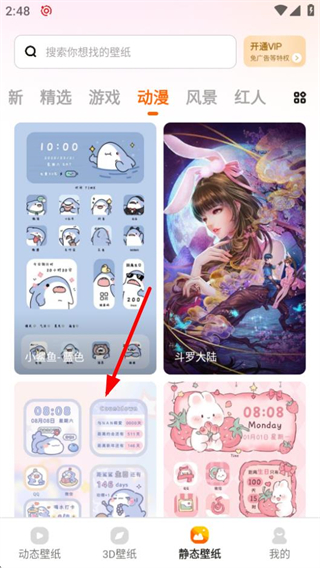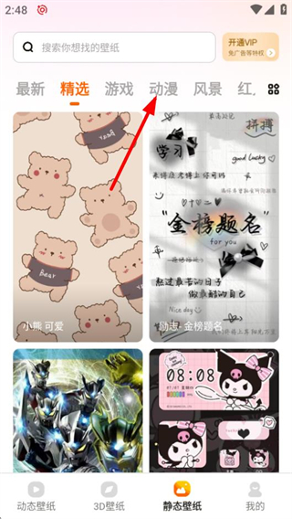 2、进入静态壁纸页面后,点击动漫分类标签,可查看动漫类静态壁纸内容。