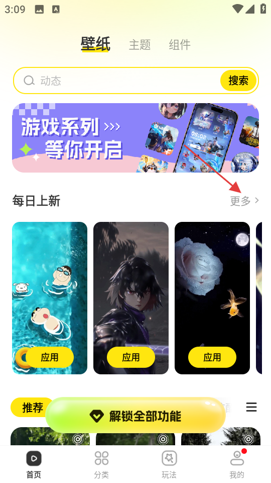 2、进入壁纸页面后,看到每日上新板块,点击其右侧更多,能查看更多每日上新的壁纸。
