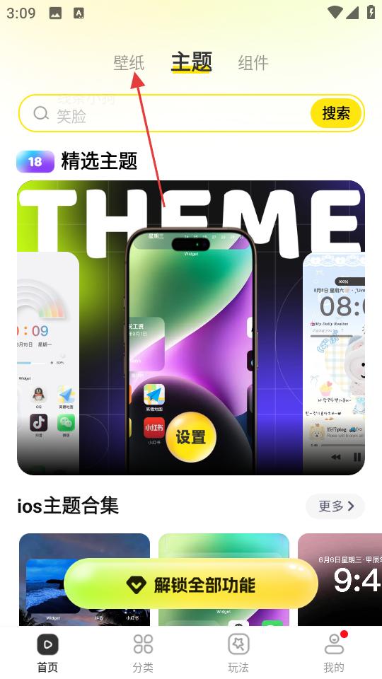 1、在软件界面,点击顶部壁纸选项,可切换到壁纸相关页面。