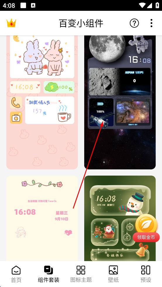 3、在组件套装选择页面,浏览各类组件套装,选择一款自己喜欢的组件套装,比如带有太空元素的组件套装,点击该组件套装。