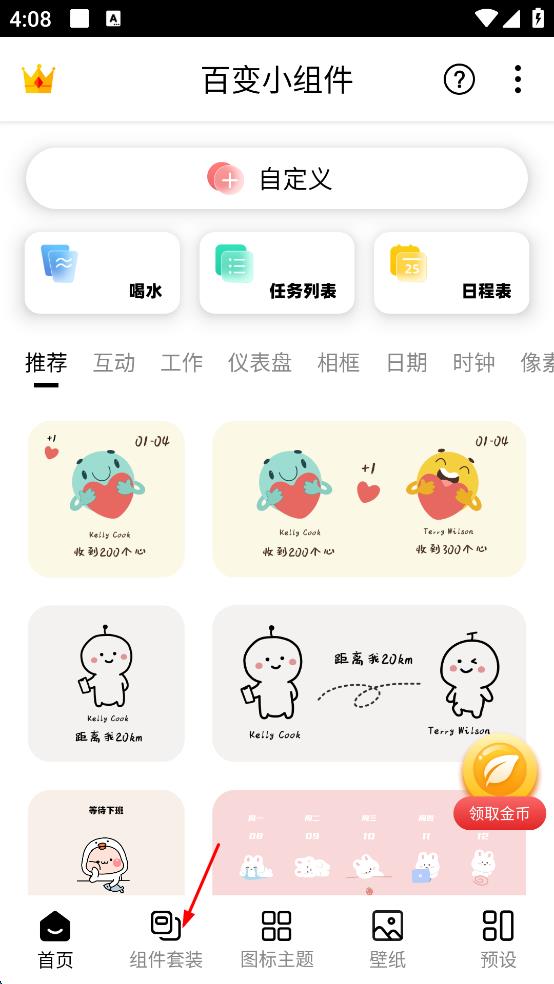 2、在应用主界面,点击底部“组件套装”,进入到组件套装选择页面。