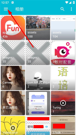 1、在相册首页,点击左上角菜单按钮,展开功能列表。