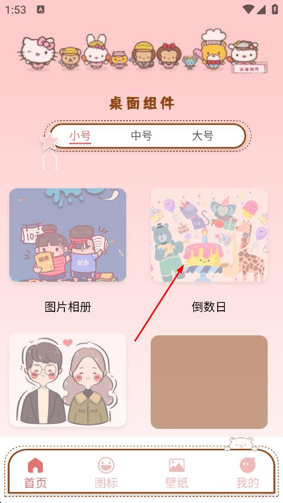 2、在“桌面组件”板块中,找到需要的组件,点击该组件,进入倒数日组件设置页面。