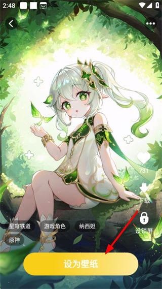 4、在壁纸详情页面,点击设为壁纸按钮,即可将该壁纸设置为设备壁纸。