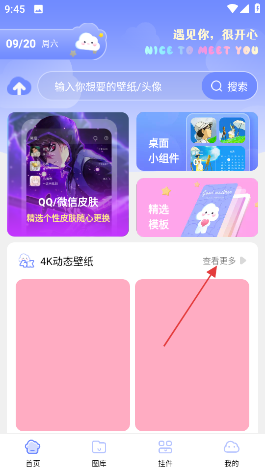 1、在首页,点击4K动态壁纸旁的查看更多,进入4K壁纸页面。