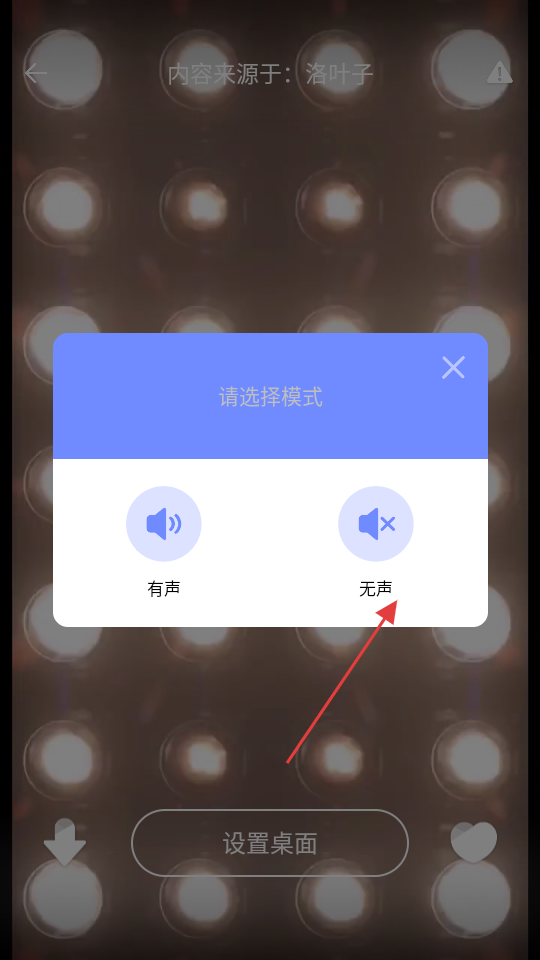 4、在模式选择框中,选择无声模式,完成桌面壁纸设置。