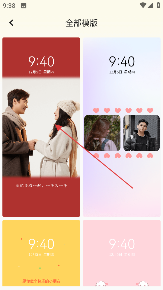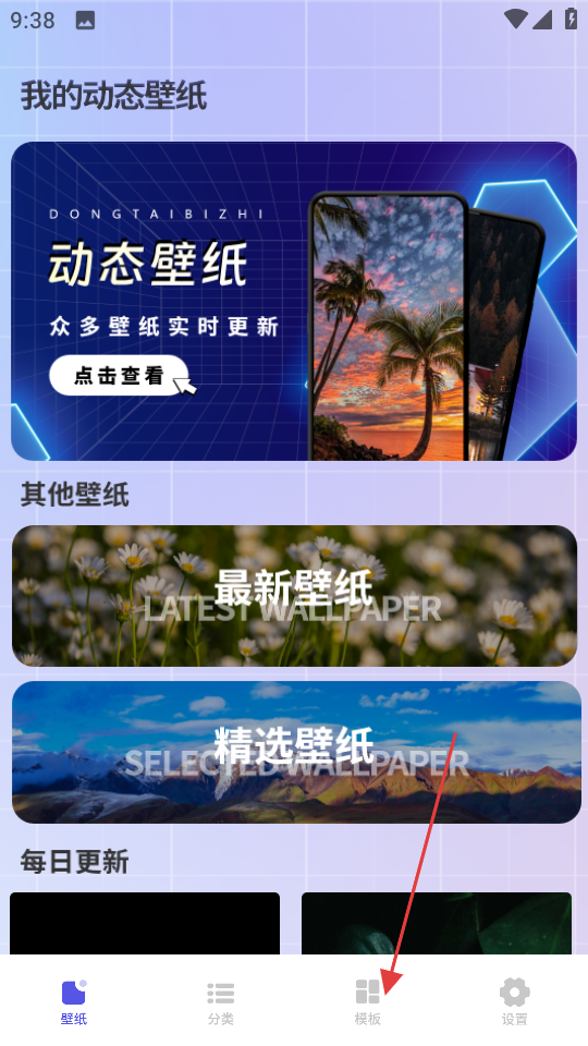 1、在壁纸页面,点击模板,进入自制壁纸模板页面。