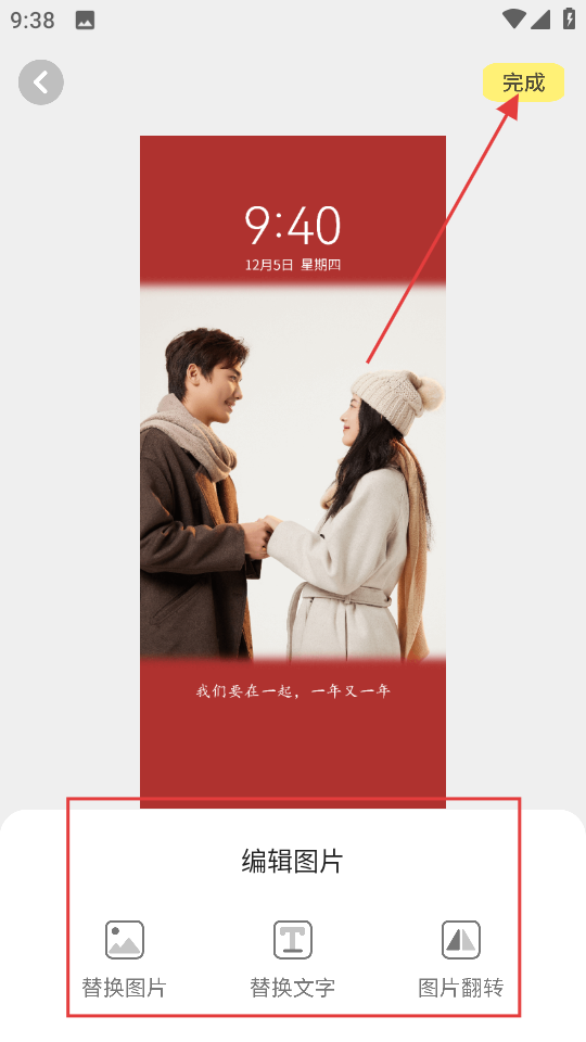 4、在模板编辑页面,可进行替换图片等编辑操作,编辑完成后点击完成。