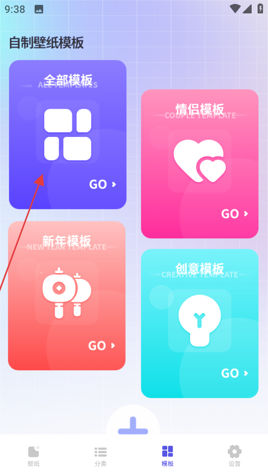 2、在自制壁纸模板页面,点击全部模板,进入全部模板页面。