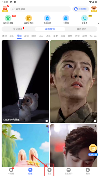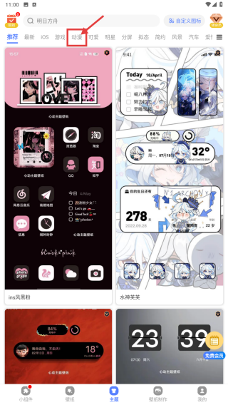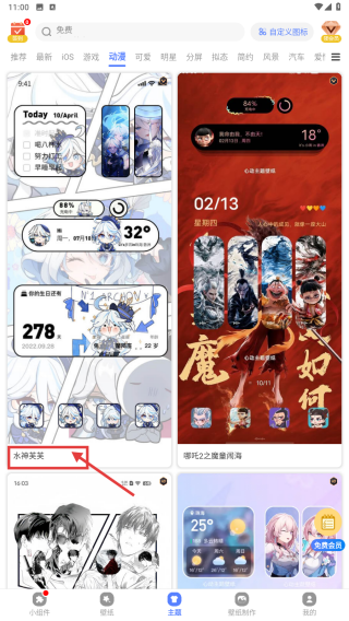 2、在主题选择页面,点击动漫分类标签,进入动漫主题列表页面。