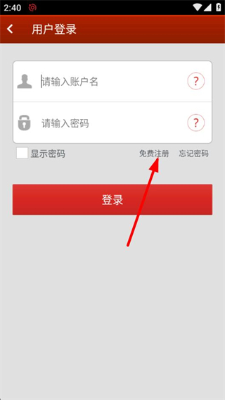 3、在用户登录界面,点击免费注册选项,可进入用户注册页面。