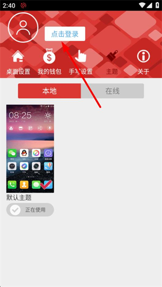 1、在问果桌面主界面,点击主题选项,可进入主题设置页面。