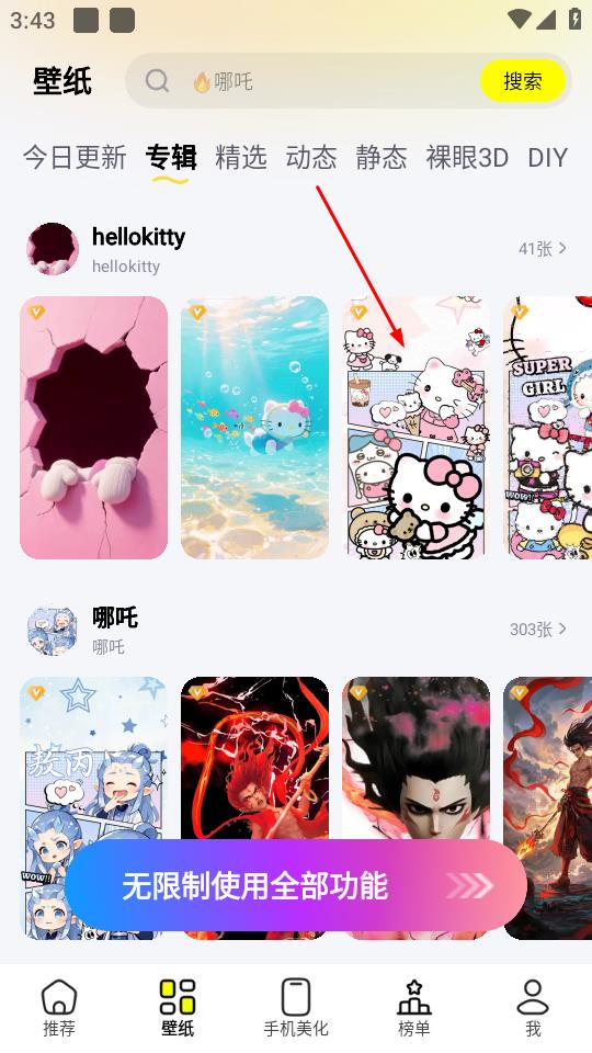 2、在壁纸页面,选择喜欢的壁纸并点击,如HelloKitty。