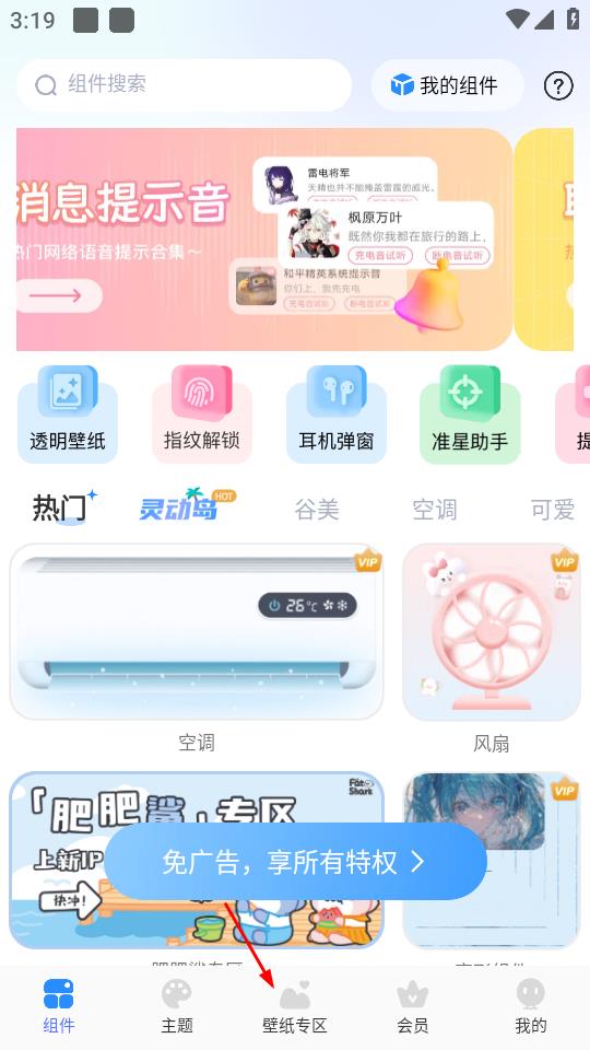 1、点击页面底部的壁纸专区,进入壁纸专区页面。