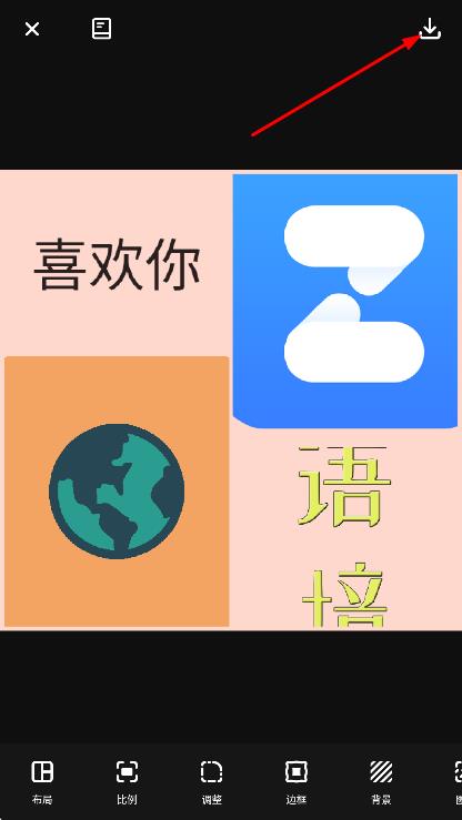 4、编辑好拼图后,点击右上角下载图标,即可保存拼图。