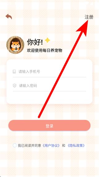 4、在注册页面,输入手机号,设置密码,勾选后,点击注册,完成账号注册。
