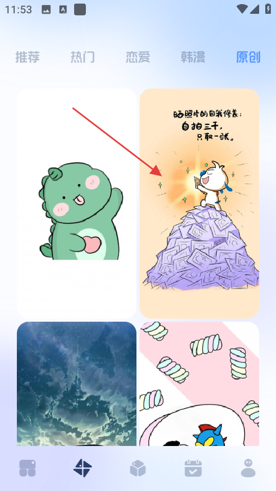 2、在壁纸分类页面,点击原创,进入原创壁纸列表页面。