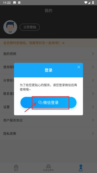3、在登录弹窗中,点击微信登录选项,进行微信账号授权登录操作。