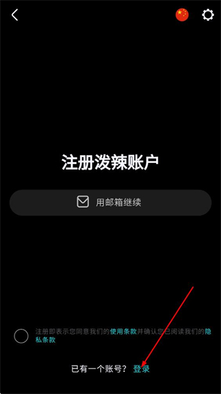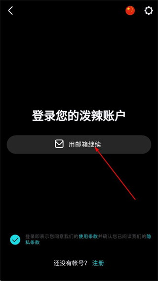 3、在登录页面,点击用邮箱继续按钮,进入邮箱登录的输入界面。
