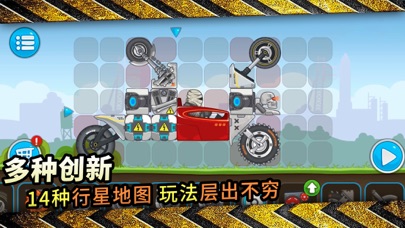 有任何问题可以联系客服QQ:3605292392,如果添加客服失败,请邮件chenxiaoqi@xplaymobile.com。 《暴爽疯狂赛车》可以用自己制作的赛车的形式探险遥远的行星山丘。因为交通工具是玩家自己设计的,所以成功的关键由你掌握! 在赛车上安装喷气发动机、反应器、车轮或者各种升级品赛车配件,为险峻的山峰和异国情调的行星之旅做准备吧。驾驶低档要谨慎–旅途中可能会遇到各种危险。也有陷入燃料不足,在崎岖不平的坡道上车轮磨损,驾驶员的宇航服绽开的情况。 主要特点: *14种行星地图可供探险。当然行星的种类今后还将追加 *真实的物理引擎 *玩家可以制作的横杆种类无限大 *游戏中制作要素和比赛的要素混合在一起,无论多大的你都能享受赛车的乐趣。 *谁都能玩得开心的应用程序 *游戏免费下载 做好冒险的准备,系好安全带出发进行! --正版授权!修复游戏内偶现的bug