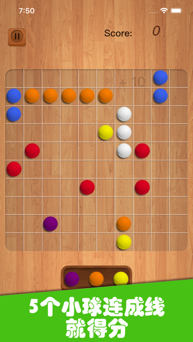 非常经典的五子连珠游戏。 五个相同颜色的小球在同一条直线上就会消除。 每移动一次小球棋盘上就会增加3个小球。 棋盘满格游戏结束。 分为传统模式和过关模式。 希望能带给您快乐。优化小球消除动画效率,解决消除卡顿bug。 新增15个关卡。