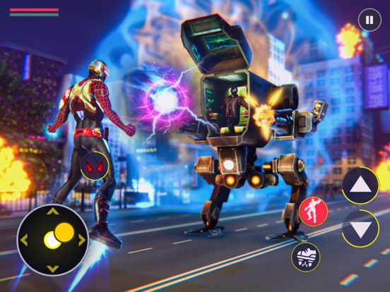 宇宙法则被打破,我们的星球受到外星机器人的攻击。紧张刺激的动作体验触手可及。超级恶棍与机器人联手。 您准备好进行史诗般的战斗了吗?一场令人兴奋的冒险正在等待。掌握超级英雄的力量并接受挑战。我们的世界需要人类的救世主,超级英雄是唯一的希望。请记住,您的服装只需单击一下即可。从不公正战争的超级英雄与超级恶棍的范围内进行选择。从各种武器和超能力攻击中进行选择。 邪恶的外星军队机器人部队想要奴役生活在地球上的人类,他们雇佣了黑手党领袖和暴徒来控制城市和人民。我们的未来正在被破坏;一切都被接管了,警察,军队。这是一个开放的世界游戏,没有规则,没有法律,没有限制。这是真正的善恶恶棍传说之间的直接战争。利用美妙的一生机会并伸张正义。 神力选择了一位超级英雄,一颗纯洁的心,一颗真理的灵魂来反击。他被赋予了神圣的超能力。如果你有接受挑战的意愿,那就成为英雄并享受超能力。不要忘记!你被分配了通过消灭所有邪恶的恶棍、外星机器人和黑手党来拯救城市和地球的任务。 超能力 飞上天空,即使有眼镜蛇直升机,也没有人能逃脱正义 电磁闪光绳是你爬上墙壁杀死敌人的武器 气垫板飞得很快以追逐敌人。 超级攻击 面对boss反派和外星机器人时使用“电磁火吹” “激光电闪”攻击远距离摧毁敌方直升机 “霰弹枪”攻击对战 冲刺追逐,格斗解决并使用火球杀死歹徒 敌人 超级反派 外星军队机器人 眼镜蛇直升机 黑手党帮派、歹徒和射手首次使用最先进的闪光绳机制,享受最高跳跃后的自由落体和摇摆。令人惊叹的新角色“Destello”正在挑战镇上的新蜘蛛头目。沉浸在超级英雄正义战争联盟的冒险中,爱上具有更多免费选项和新关卡的激动人心的游戏玩法。