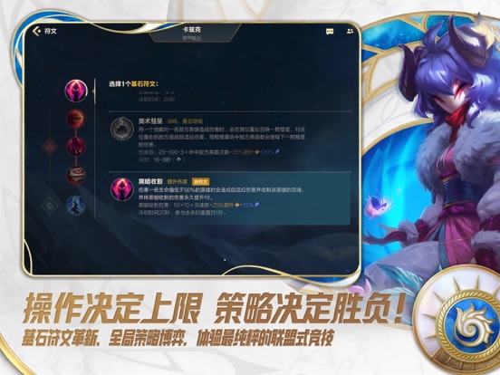《云·英雄联盟手游》是由腾讯先锋云游戏和《英雄联盟手游》联合发布的云游戏版本。约30M的超小包体即可体验游戏完整内容,免更新、不发热、低耗电,一键下载、立即体验! 风靡全球的MOBA经典之作,真正的5V5公平竞技对战,传承端游纯正体验的同时带来全新体验。 经典延续,创新玩法; 花式操作,秀无上限; 激情对决,公平竞技; 随时随地,一起开黑; 掌上竞技,创新体验。 策略、战术、意识、配合,在移动端重现峡谷战场乐趣。 集结吧召唤师——欢迎来到《英雄联盟手游》,是时候展现真正的技术了! 【新英雄】 黑默丁格:为了拉开《双城之战》庆典的序幕,率先来到峡谷的是大发明家.黑默丁格!他也许是皮尔特沃夫体型最小的发明家,但他导弹的威力可不小。在炮台的帮助下,黑默丁格非常擅长掌控战略点和区域,将炮台部署在线上的战略要地 即可获得优势。 安蓓萨:本次要给大家介绍一位全新的朋友,她就是——铁血狼母.安蓓萨。安蓓萨是一名冷酷无情的近身格斗战士,她的连招敏捷致命 让峡谷的敌人闻风丧胆。同时她也是一位令人生畏的战术家,她的技能体现了心胜于物的精神,在施展连招时 玩家总能做出自己的选择。 至于这个版本最后一名登场的英雄嘛,这个家伙还在孵化 悠闲地享受着休眠状态,和《双城之战》一样,我们的版本也会随着不同的章节而演变,等大家把戏看完,那就是时候唤醒我们的第三位英雄了。 我们的老朋友,伊泽瑞尔、霞、卡莉斯塔、薇恩、崔丝塔娜也将获得一定调整,敬请期待! 【S15赛季】 我们即将迎来S15排位赛季,S15赛季开启时间为2024年10月18日08:00,结束时间预计在2025年1月,详情请关注排位赛入口界面提示。 赛季限定皮肤“龙冕异士 烬”上线,S12赵信赛季皮肤将会返场到排位商城。 【新皮肤】 在新版本,手游专属的星域、山海绘卷、幻灵战队等高人气的皮肤即将到来!新的宝典皮肤猎梦吞噬体 卡兹克也会带着诸多福利和大家见面!还有更多精美皮肤陆续登场。 【装备和符文】 1.新增全新海克斯主题装备:海克斯-窃魂法典、海克斯-岚切、海克斯-黑色切割者、海克斯-基克的聚合; 2.装备调整:圣物之盾、幽魂镰刀、上古钱币、山脉壁垒、黑雾巨镰、飞升护符会在版本更新后得到调整; 3.符文调整:迅捷步伐、以绪塔尔种子罐、甜食专家将会得到调整,详细信息见后续官方公告。 【新宝典】 1.全新峡谷宝典 “猎梦吞噬体 卡兹克”将在新版本更新后与大家见面,另外玩家可以通过活跃在宝典75级获得“猎梦吞噬体 适境异变 卡兹克”。同样,召唤师们可以升级宝典,解锁丰厚的奖励!此外,全新战斗纹章 “猎梦吞噬体” 将会登录宝典商城,神奇先驱 杰斯 英勇无畏、灭迹行者 烬 前卫艺术、幻梦甜心 阿狸 红粉魅惑、盗梦暗影 锤石 秘灵、神奇先驱 杰斯、灭迹行者 烬、幻梦甜心 阿狸、盗梦暗影 锤石也会在宝典商城限时返场! 2.“猎梦吞噬体 卡兹克”峡谷宝典结束后,将会上架全新的小小宝典-“永恒之森 霞”,持续时间约为1个月。小小宝典开放期间,宝典等级、奖励、任务将根据小小宝典的特点进行调整。在峡谷宝典和小小宝典开放期间,星纹券可以通用,小小宝典结束后,未使用的星纹券将被系统自动回收 【战场】 1.海克斯远古巨龙: 1.1 远古巨龙获得全新海克斯强化,拥有新的技能和新的击败奖励; 1.2 和其他所有龙型生物一样,进入战斗时会起飞,将周围敌人推开; 1.3 远古巨龙攻击时释放闪电链,最多命中范围内3名敌人,闪电链弹射到的敌人越少,伤害越高; 1.4 击败奖励得到调整 2.霸龙机甲:霸龙机甲的属性、技能以及机制将会得到全面的调整和优化,希望召唤师们在霸龙机甲加入战场后可以获得更多精彩的体验; 3.海克斯峡谷迅捷蟹:(新增)峡谷迅捷蟹被击败时,8秒内参与击败迅捷蟹的友方英雄都可以分享额外25%的掉落金币。同时在战场时间7:30后新生成的峡谷迅捷蟹,会进化为更强大的峡谷迅捷蟹。被击败后会提供新的效果; 4.海克斯万用宝匣迭代:野区海克斯万用宝匣机制得到更新,另外新增道具 野区巡回守护、海克斯扫描; 5.以绪塔尔沙蝎优化:玩家召唤以绪塔尔沙蝎后,除了获得沙蝎自身补兵金币之外,在远离沙蝎时将可以获得沙蝎周围小兵死亡的金币和经验。 6.信号系统升级:新增智能信号按键、常用信号升级、新增信号提示、删除旧版四键方案 7.守卫预警功能与神谕透镜优化:新增守卫预警功能、优化神谕透镜功能; 【新玩法】 终极对决:召唤师峡谷中,玩家开局可以选择一件终极装备,通过战斗获得任务道具对装备进行升级和打造; 【玩法调整】 1.排位赛禁用阶段调整优化 1.1.黄金及其以下段位将不在开放禁用阶段,玩家将直接匹配成功后直接进行选人; 1.2.铂金及其以上段位将会开启禁用阶段,且敌我双方阵容每局最多可禁用三人; 1.3.大师及其以上段位将开放5人禁用,全队中所有位置都可在禁用阶段禁用本局不可使用英雄; 2.局内英雄标签优化和英雄推荐 2.1.匹配和排位赛玩法内英雄标签优化,新增英雄一句话描述和技能作用展示 2.2.匹配和排位赛玩法内新增英雄推荐功能;可根据玩家的熟练度和所选英雄,推荐对应的相似玩法英雄,帮助新玩家和想玩别的英雄的玩家尝试新英雄~ 3.单机模式&练习模式优化 3.1.新增:单人拟真对线练习场景,为玩家提供不同难度的上中下路的单人对线的拟真练习场景;为单机玩法5