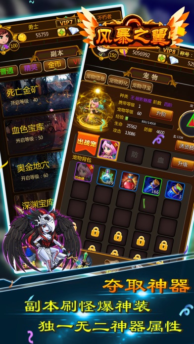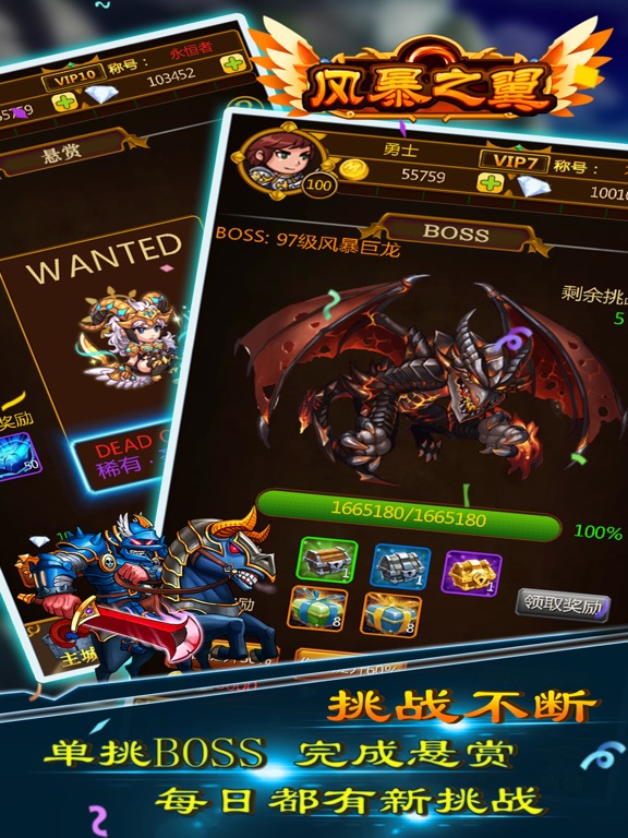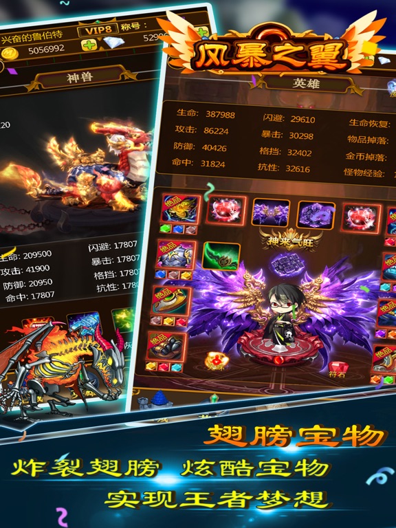 【故事背景】 早在远古时期,真神泰坦创造了世界,美丽的艾希泽斯大陆诞生了…… 然而,艾希泽斯上纯粹的自然能量也吸引了来自宇宙深处的邪恶一族——暗黑军团!! 诸神之战一触即发,真神泰坦与黑暗军团展开了殊死较量。最终,泰坦一族以牺牲自己为代价,用虚空封印了暗黑军团的魔王首领拉格萨斯。 随着时间的侵蚀,地下封印的能量也被慢慢削弱,直到有一天……黑暗军团的降临也影响到了这个与世隔绝的神秘村庄。村庄里年轻的勇士们站了出来,作为地下奇兵,为了守护他们的家园而战! 但是,想要打败邪恶的暗黑军团并不容易……勇士们开始冒险寻找泰坦遗留的神器,希望借助神器的力量消灭恶魔城堡。 等待着他们的将会是怎样的命运…… 【游戏特色】 1.操作简单的角色扮演放置游戏,好玩不烧脑的单机rpg; 2.没有无聊的剧情任务,刷怪物刷材料合成装备,击杀各种BOSS的单机放置游戏; 3.收集性强,上百种各种不同的装备,十多种套装,强力套装属性,满足你的收集欲望; 4.数十个经典地下城堡,上百只不同怪物奇兵和BOSS等你来挑战; 5.工坊锻造提升熟练度,可合成更高级的装备,可以自己打造装备的单机RPG; 6.刷探险、刷副本、刷爬塔,获取大量材料,打造独一无二的神器; 7.稀有神器刷怪就能掉落,随机产生各种稀有精英奇兵,隐藏BOSS; 8.丰富的成就和称号系统,更有钻石和额外的属性奖励; 9.炫酷技能搭配,不同类型的技能组合,越级放置打怪,不只是说说而已; 10.晚上睡觉也可以挂机得收益,真正的放置类RPG; 【玩家评论】 暗黑魔域:刷材料打装备,这设计感觉太经典了,就像玩WOW一样,喜欢单机游冒险游戏的快来! 单机RPG爱好者:经典的单机放置rpg游戏,免费钻石多,不花钱也能玩得爽! 传奇冒险家:挺好玩的单机角色扮演RPG游戏,但是又不是无脑挂机,主要是免费的,做做任务看看视频就可以得好多钻石。 传说之刃:翅膀看起来好牛X,特别是高阶翅膀,加属性也挺划算,高阶宝物还可以加成隐藏怪物出现概率,喜欢这样的放置rpg。 英雄传说:冒险打怪可以出神器,开箱子出神器概率更高,太爽了,喜欢刷材料爆装备的同学们不要错过! 放置类游戏爱好者:简单易上手的单机RPG游戏,这才是真正有情怀的游戏,让人真正体验到放置游戏的乐趣! 魔塔兽人:经典的单机放置游戏,回合制魔兽地下暗黑风格,完全停不下来的角色扮演游戏! 【联系我们】 微信公众号:喵宝网络 风暴之翼官方QQ1群:569119956 风暴之翼官方QQ2群:530983905 风暴之翼官方QQ3群:582878911 欢迎加入官方Q群参与讨论、获取游戏攻略。也欢迎提出意见与建议,我们看到后会第一时间给予反馈。 温柔漂亮的客服妹纸等你来撩!!1.新增双旦节系列活动,12月23日00:00开启; 2.新增魂兽升星功能; 3.灵饰强化等级上限提升到20级; 4.神魂开启增加条件限制; 5.新增离线挂机可出现隐藏怪物; 6.增加每日探险掉落钻石数量上限; 7.提高钻石累计消费奖励档; 8.新增金色灵饰-众神之力切换形态功能; 9.神域装备新增升阶功能,升阶消耗混沌神石; 10.新增大炼宝牌限时兑换部分道具的功能; 11.其他若干界面体验优化及功能优化;