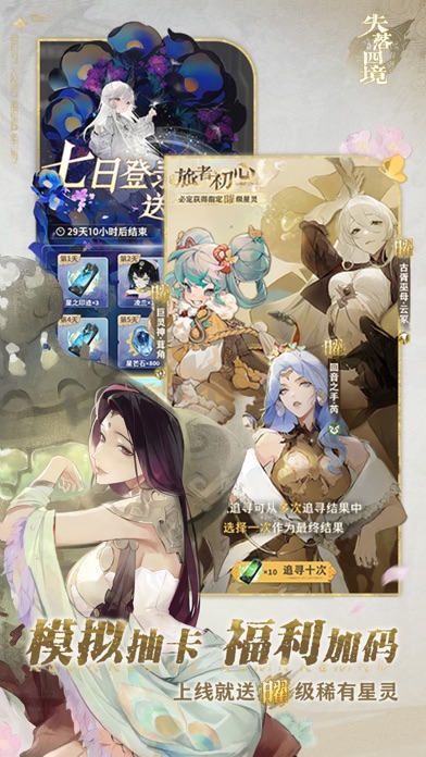 《失落四境》是一款箱庭探索RPG手游,讲述了由玩家扮演的「旅人」与智能少女「缚月」结伴而行,利用诡具遗物「旅者追思」的能力,穿行于九畿大陆的不同时空之中,与不同历史之中的「星灵」们,一同找寻挽救世界的可能性。 【玩法介绍】 风格场景RPG探索: HD-2D风格化场景,打造沉浸式RPG冒险体验,多变的天气,怪诞的故事,穿梭于城镇之间,发现奇幻世界的奥秘,找寻失落的文明。 全新轮盘随机战斗: 创新即时制战斗玩法,找准时机转动轮盘,召唤星灵并肩作战,随机概率刺激挑战。 策略战前搭配: 四大阵营五大职业,海量星灵供您选择。共振与符节的策略排布考验您的战术战略布局,为冒险之旅更添乐趣。赌还是稳,合理的搭配是取胜的关键。 丰富娱乐玩法: 肉鸽副本全随机关卡,每一次都是全新体验,每一步都是新的惊喜,结局由您自己选择。累了可以钓会鱼放松一下,没准还有意外之喜。修复一些bug