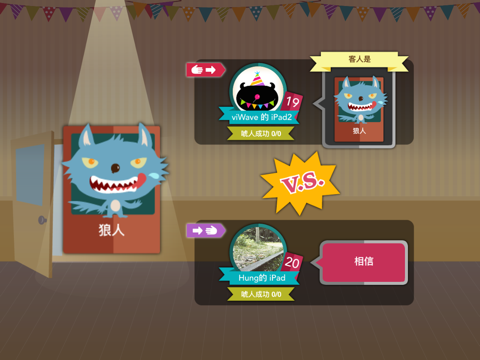 「viParty - 谁来Party? 」是一款适合在派对中游玩的扑克游戏,与家人或三五好友一同在客厅享受以大屏幕进行游戏的乐趣。 玩家描述手牌上的捣蛋鬼并出牌给其他玩家,同时收到牌的玩家选择相信或不相信捣蛋鬼的身份,谁误判了捣蛋鬼的真实身分就得收下这张牌。 游戏需透过高超的唬人技巧,把你手上的捣蛋鬼送到对手的派对去,当同样的捣蛋鬼集满四张,派对就只能结束噜! [游戏特色] * 电视, iPhone, iPad 皆可当做牌桌,享受多屏幕的乐趣 * 玩家手牌会呈现在玩家各自的iPhone或iPad上 * 最多支援6位玩家 * 支持多平台,与朋友同乐不受限 [游戏需求] *使用Cast device开局 需有EZCast或Chromecast,才能在电视上看到游戏画面 *不使用Cast device开局 需有3台以上装置(iPad或iPhone),使用其中一台装置开局,另一台装置加入游戏局 Apple 已更新此 App 以显示 Apple Watch App 图标。 问题修正: 其他 viParty 游戏造成的开局问题