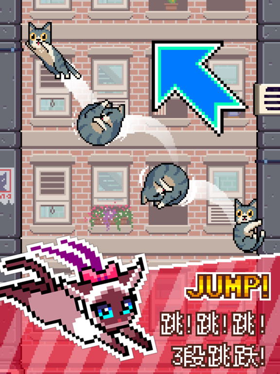 Cat Jump游戏操作简单,男女老少皆宜,是让人沉迷的街机游戏。 一键三跳! 简单但不容易! 通过操控可爱的猫咪,避开障碍物,一跳再跳,挑战更高高度吧! 游戏特点 - 操作简单,男女老少皆宜! - 只需通过爆发力和操作实力的记录比拼! - 收集可爱猫咪的乐趣! - 有助于提升注意力、爆发力、操作力、手速、观察力最优化游戏了。