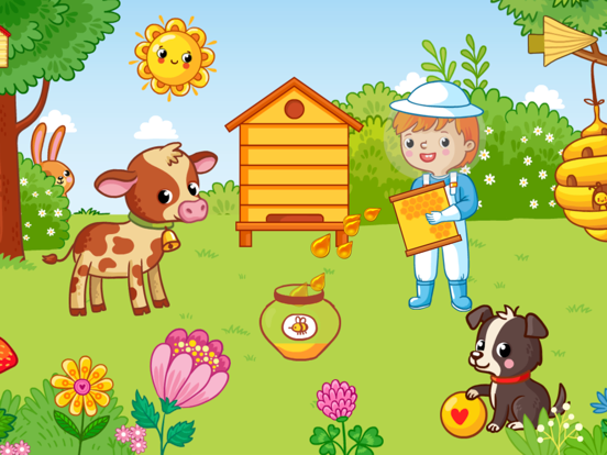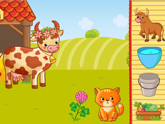 趣味农场 - 儿童互动益智游戏!解开动物谜题,看看农场动物们都有哪些技能!这款游戏由心理学家开发,旨在促进儿童发展。游戏配有英文语音。 农场游戏旨在培养儿童以下认知能力: - 思考 - 探索物体的各种可能性。 - 想象力 - 想象动物们如何活灵活现。 - 注意力 - 准确放置物品。 - 道德品质 - 帮助其他儿童和动物,并喂养它们。 逼真的音效、明亮的画面和丰富的动画,让游戏更加精彩纷呈! 你将认识以下角色并完成以下任务: 1. 喂养马和小马驹,为小女孩采摘鲜花。 2. 看看稻草人能不能把鸟儿赶走。 3. 如何从奶牛身上挤牛奶?喂养小猫。 4. 在菜园里种植蔬菜。 5. 花园里来了客人!看看谁能吃庄稼! 6. 给小羊剪毛,收集羊毛。 7. 为什么猪喜欢坐在泥里?它们午饭喜欢吃什么? 8. 收获蔬菜和水果。 9. 鸡舍里的乐趣! 10. 我们怎么获得蜂蜜?看看有趣的蜜蜂。 Available in various languages.