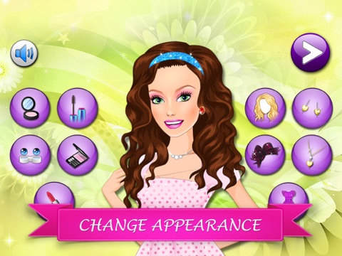 成为春天的女王!在美容院涂抹化妆,选择礼服或衬衫,挑一个发型,并成为最有吸引力的女孩!扮靓春天的公主在这场比赛中的女孩,勇于创新,用你的想象力发挥! 美容院公主拥有时尚可爱的衣服::   - 连衣裙,上衣为春姑娘   - 发型真正的公主   - 化妆模型:睫毛膏,口红,眼睛的颜色,腮红,睫毛   - 手镯,项链和耳环,可爱的女孩   - 时尚配饰的芭比娃娃 给女孩改头换面,拯救公主春天的照片!