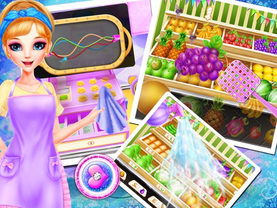 今天在我们全新的游戏里,你将会看到一位非常可爱的超市小当家。跟随我们一起体验一下超市一天的精彩生活吧。首先,在超市工作开始之前,你需要帮助这位超市小当家穿上超市工作的制服,把她打扮好。每完成一步游戏,你都将得到一座奖杯。接下来,擦拭一下超市的收银台,检查一下收音机是否可以正常工作,如果不正常,需要将收音机及时修理好。然后,就要开始超市的工作啦!将水果柜台上的蚊蝇都杀死,并把不新鲜的水果都撤下,同时换上新鲜的水果。完成该工作后,你需要把新鲜的蔬菜逐一放到蔬菜货柜上。在每种蔬菜下贴上正确的价格标签。这时,也会有顾客光顾超市了,帮助顾客挑选所需的生活用品并结账付款。然后,你需要清理一下饮料柜旁边地面上的污渍,将垃圾扔到垃圾桶里,并把柜子里倒的饮料扶正,给饮料柜插上电源,以便正常工作。下一步的工作,你需要按照客户需求制作新鲜美味的冰淇淋。这就是超市一天工作的全部内容了。体验愉快! 特征: 1. 给超市小当家换上超市工作服 2. 清洁并检查超市收银机 3. 将水果柜台打理好 4. 把蔬菜柜台收拾完毕 5. 帮助顾客挑选物品并结算 6. 清理饮料柜和地面污渍 7. 制作冰淇淋 玩法: 1. 帮助超市小当家穿衣打扮 2. 清理收银柜台 3. 修理收银机 4. 处理掉水果柜台上的蚊蝇 5. 将新鲜的水果放到水果架上 6. 把新鲜的蔬菜拜访到货架上 7. 给每种蔬菜贴上价格标签 8. 帮助顾客挑选日用品 9. 给顾客结算 10. 清理地面污渍 11. 收拾好饮料柜 12. 制作冰淇淋修复漏洞,更棒体验