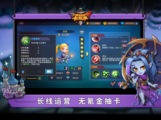 回合制养成游戏,有结合单机自走棋和Roguelike+DBG模式的玩法。 **如果你也喜欢策略卡牌游戏! **如果你已经厌倦了ssr卡的属性碾压! **如果你也和我们一样讨厌十连抽! **如果你想找一款英雄永不贬值的游戏! **如果你想体验无数基于Roguelike的创新玩法! **如果你已经准备好陪伴winwill开启一场靠智慧获得荣耀的新征程! 那么城堡传说大乱斗将是你的第一选择,你值得拥有! 就下面的游戏介绍内容,其实我的建议是,你可以不用看......因为没什么好多说的,城堡传说大乱斗就是手机上最好玩的策略养成卡牌!快下载来玩吧! 【极具创新的战斗模式】 10vs10棋盘对战,通过战前阵容搭配和战斗中的技能选择,来取得对战的胜利。和一般卡牌点击图标释放技能不同的是,在大乱斗的战斗过程中,每一次释放技能都要根据当前的战斗局面来做出合理的选择,从而来达到最大的收益。你会惊奇的发现,其实你是在下棋...... 支持玩家实时对战。 【令人惊叹的策略搭配】 游戏拥有战士,法师,牧师,骑士,射手,刺客,术士,剑士等8种完全不同的职业,各自拥有自己独立的技能体系。所有佣兵会有属于自己的若干种族。目前包括人类,野兽,精灵,逝者,天使,恶魔,哥布林,龙,虫等数10+种族,部分佣兵还拥有魔魂者,领主,主教,国王等特殊身份。不同的职业和不同的种族都拥有各自不同的羁绊能力。 【所有佣兵都正常获得】 保证没有十连抽这种鬼东西,所有顶级佣兵都能靠游戏获得!如果有什么佣兵是你想要但是得不到的,可以寄刀片给我们。 【玩法丰富&更新及时】 winwill工作室最新独立作品,城堡传说系列首部网络游戏! 【关于我们】 《城堡传说》开发团队取名winwill,是国内一个专注独立游戏开发的小团队。他们由一群自恋的人组成,这群"白痴"一直想扮演上帝的角色^_^,创造一个新颖又完整的游戏世界,来吸引广大游戏玩家搬家到这里来,一起生活...... PS: 官方QQ1群:881655064 微信公众号:winwill工作室 新浪微博:winwill工作室 官方邮箱:shchisen@vip.163.com 城堡传说大乱斗1.52.01版本更新内容 1. 更新:春节活动 2. 优化:引擎升级 Ps:欢迎团长关注“winwill工作室”微信公众号了解游戏最新动态
