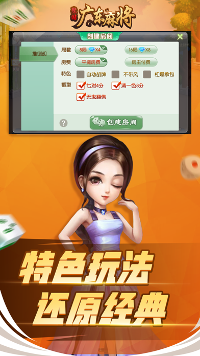 聚游广东麻将欢乐版是适合广东本土地区的一款游戏应用,包括了广东经典的玩法,适合亲朋好友一起实时交流随时游戏约战,而且游戏玩法比较简单,界面精简纯粹,打牌节奏快,是广大牌友的必备应用。聚游广东麻将欢乐版的玩法多种多样,有多种鬼牌的选择,有自主定义的买马方式,有任君搭配的番型类别,是集欢乐性和益智性的一款游戏应用。