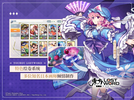 周游幻想乡 去迎接最宏大的异变吧! ◇◆◇ 东方归言录是什么? ◇◆◇ 失落的言语——LostWord。 幻想乡发生了围绕LostWord产生的异变。 各位熟知的博丽灵梦与雾雨魔理沙自不用多说,与特色各异的众多伙伴一起周游幻想乡解决异变吧! ※东方归言录(东方LostWord)是《上海爱丽丝幻乐团》原作的超人气企划《东方Project》的二次创作RPG。 ◇◆◇ 角色介绍 ◇◆◇ ▼博丽灵梦 拥有“博丽神社的巫女小姐”“永远的巫女”“乐园的绝妙巫女”等别称, 具有在空中飞行程度的能力,居住在博丽神社的人类。 ▼雾雨魔理沙 拥有“东洋的西洋魔术师”“奇妙的魔法使”“普通的黑魔术少女”等别称, 具有操纵魔法程度的能力,居住在魔法之森的人类。 另外还有八云紫、魂魄妖梦、爱丽丝·玛格特洛依德、铃仙·优昙华院·因幡、蕾米莉亚·斯卡雷特、帕秋莉·诺蕾姬、十六夜咲夜等等,众多熟悉的角色登场! ◇◆◇ 游戏系统介绍 ◇◆◇ 特色各异的角色们,使用自己独有的符卡进行愉快的弹幕对决! 可以对自己中意的角色按照自己的喜好进行培养! 队伍可以最多携带6名角色,朝着对战斗更有利的方向搭配吧! 每名角色都准备了3种不同类型的配音,选择更符合自己印象的声音愉快的进行游戏吧! 通过服装更换系统,改变角色们的造型吧! ◇◆◇ 参与的绘师阵容 ◇◆◇ 夢野ろて、あらたとしひら、現津みかみ、うめきち、えれっと、Capura.L、ギロチン、桜沢いづみ、桜木蓮、桜ひより、Shinia、粗茶、竹花ノート、田中松太郎 、とんとろ、なつめえり、萩原凛、火浦R、ヒナユキウサ、フルーツパンチ、みけおう、皆村春樹、もっつん*、もりのほん、山鳥おふう、ゆうき鶏介、夜ノみつき、らぐほのえりか、友野るい、富岡二郎 ...等,今后还会有更多绘师参与! ◇◆◇ 参与音乐社团 ◇◆◇ 荒御霊、オーライフジャパン、梶迫小道具店、COOL&CREATE、東京アクティブNEETs / 交響アクティブNEETs、Hachimitsu-Lemon、Foxtail-Grass Studio、豚乙女、flap+frog、Melodic Taste ...等,今后还会有更多社团参与! (c)上海アリス幻樂団 (c)GOOD SMILE COMPANY, INC. / NextNinja Co., Ltd.【版本更新内容】 1.修正游戏内部分文本显示问题 2.修正其他已知问题 3.优化部分机型的点击滑动体验