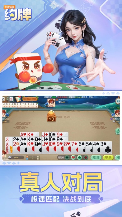同城游:约牌是一款覆盖全国大部分地方线下棋牌玩法的线上游戏合集,经过当地多次线下实地走访调研,将线下游戏规则搬运至手机上,让每位不在家乡的游子也能时常感受来自家乡亲人的特别关怀! 内置所有游戏终身免费下载体验,当前已经覆盖浙江、安徽、江苏、山东、内蒙、湖南、江西等多个省份的扑克麻将玩法,大到家喻户晓的双扣、四川麻将,小到流行于县市的如原子、保皇等玩法,应有尽有。 游戏特色 【原汁原味,画面精美】 地方游戏玩法,原汁原味当地特色,梅兰菊竹、春夏秋冬,精美画面,舒适不伤眼睛! 【万人在线,一秒配桌】 数万玩家实时在线,极速配桌,对局无需等!好友相邀,距离不是问题! 【每日签到,福利多多】 每日签到抽奖、摇奖抽奖,获取免费银子,嗨玩全场,福利享不停! 【比赛不停,奖励丰盛】 各类比赛免费报名,同场竞技争冠军,人人有奖不落后。 1、免费下载,占用空间小,耗电小,优化消耗,优先检测Wifi; 2、防作弊,无外挂,提供公平公正的游戏环境,安心玩游戏; 3、真人竞技,多人在线,无需等待,对局秒开,渡过闲暇时间的良好选择; 4、还原地方特色玩法,家乡伙伴一起玩。组队抓分乐趣多,闹闹财神双还原,宝牌加分乐趣多。 【特别声明】 《同城游:约牌》游戏内的一切抽奖及活动与苹果公司无关,最终解释权归同城游:约牌所有。1.新增成就系统,快来点亮你的成就 2.平阳四副头全新界面,玩法升级 3.扎股子修复线上规则问题 4.红十浙江吉林双玩法,欢乐来袭