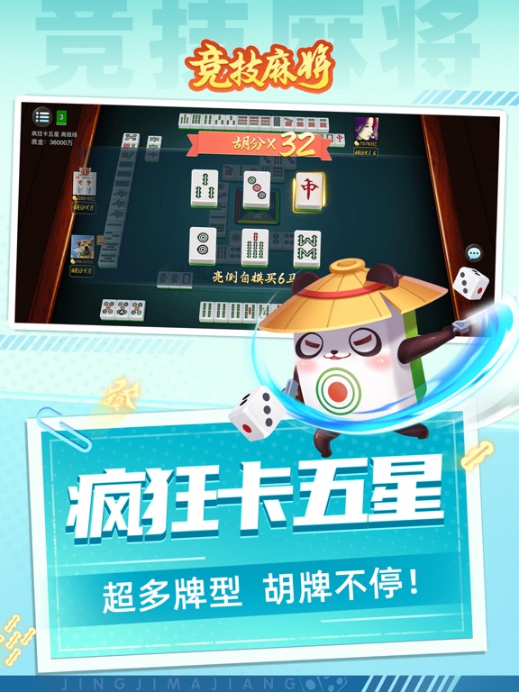 《竞技麻将》是一款刺激好玩的麻将游戏,包含卡五星、武汉麻将等经典玩法。轻松休闲的游戏氛围,紧张刺激的线上比拼,超高倍数,让您一直有杠胡不停的极致体验! 【玩法新颖】多宝血流,偷天换日,扭转乾坤 【缤纷好礼】登录就送新人好礼,金币拿不停! 【以牌会友】实时匹配,超爽对局,看谁是下一个麻将王者! 【玩法丰富】经典卡五星、地道家乡玩法体验!1、优化部分用户广告无法播放的问题; 2、优化玩法体验;