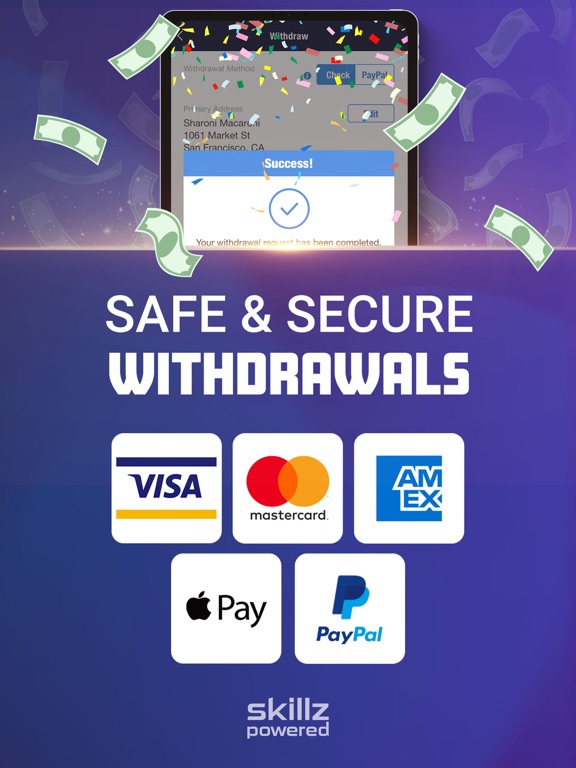 欢迎来到Skill Shot Pool。在头对头的比赛中进行竞争,以获得乐趣,获得现金,或两者兼而有之!通过Paypal、Apple Pay或信用卡随时提取您的现金奖。您可以随时通过 Paypal、Apple Pay 或信用卡提取现金奖励。 从免费的虚拟z-Bucks开始练习。快速学习如何通过银行投篮、按顺序投球、技巧投篮和快速跑台来积累分数。犯了一个错误?撤销你的最后一杆! 需要更多力量?试试强力投篮小工具。感到幸运?转动口袋以获得更高的倍数。所有玩家只能使用每个小工具三次,所以要有策略地使用它们。 然后成为职业玩家,在Skillz供电的现金比赛、联赛和锦标赛中竞争,赢取一些硬通货!您将始终与Skillz上的玩家进行匹配。 您将始终与技术水平与您相同的玩家进行匹配,以保证每场比赛的公平竞争。 训练赛和锦标赛总是免费的。只要你想,随时都可以玩。你永远不需要等待对手。 主要特点 * 简单易学又深入人心的台球多人游戏。 * 直观而精确的控制 * 逼真的物理模拟,有前旋、后旋、侧旋和转弯射击。 * 岸上投篮、技巧投篮、按顺序投篮、距离投篮、速度投篮均有额外得分。 * 巧妙地利用你的小工具。撤消上一枪,口袋旋转,强力射击 *参加游戏,赢取现金和奖品。 * 无限次的游戏,没有能量、定时器、战利品箱或付费赢利 * 与来自世界各地的玩家进行在线比赛。 * 赚取奖杯和领取丰厚的奖品。 * 收集票券并将其转化为现金或奖品。 * 在排行榜上玩得风生水起,赢取有保证的现金奖励。 您是否有能力成为专业的Skill Shot Pool玩家? 今天就来看看这款游戏吧我们修复了一些小错误,并使赢得硬性现金奖励变得更加有趣。