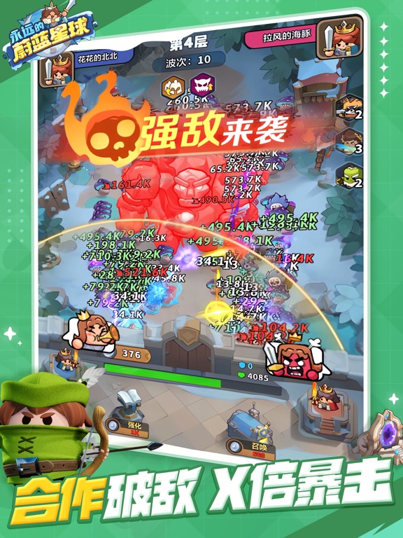2025非常值得玩的全新萌系塔防手游。游戏提供英雄2合1+局内3重随机玩法:随机召唤英雄、随机搭配技能、随机合成进化!3分钟一局,每局都有100+策略配搭,让传统塔防妙趣横生。卡组养成叠加运气buff,无论是休闲党还是策略党都能3秒上手,狂推百关!你还能在丰富的合作模式和PVP模式中与好友切磋,让大佬带飞!更有竖版的Q萌画面和华丽的战斗特效,随时随地带来爽快割草感,尽情享受无穷的塔防游戏乐趣。 邪恶哥布林开始入侵星球,作为国王守护者,你要招募特殊能力的英雄,在战斗中觉醒技能,激活远古图腾,产生强大的共鸣以抵御入侵!“为了蔚蓝星球!”不要小瞧任何一个宝箱,它们蕴藏着星球的祝福,丰富的战术补给让队伍实力飙升。唯有策略与勇气,才能击退所有敌人,守护美好的蔚蓝星球! 特色玩法: 【5秒上手,一局上头】 战斗只需3步,召唤、强化、合成,爽快割草,轻松解压,迅速上手; 【合成随机,天降主C】 随机召唤、随机进化、随机技能,三重肉鸽机制加剧变量,面对无尽火力召唤主c进化最强王者,这是一场运气与实力的最强碰撞; 【策略搭配,通关不累】 Boss降临高燃来袭,七大职业火速集结,养成轻松简单,尽情打造超神阵容,勇闯难关刺激对决; 【狂抽狂赢,资源不停】 海量资源统统拉满,非酋救星,欧皇起飞,满足所有人体质的快乐抽卡机制; 【合作破敌,X倍暴击】 合作模式中好友开黑或者随机匹配队友,共同抵御BOSS来袭,肆意横扫获得丰厚奖励!全新武器皮肤【鹦雄】登场,使用后技能带来国王剑气有概率眩晕精英或首领;新增风之谷主题头像框和追风称号,皆享有属性加成;开启全新机关定格时钟,升级机关等级,可解锁更多机关效果。