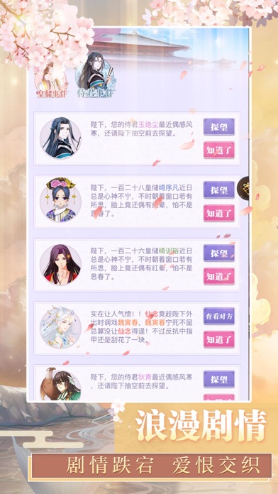 风云诡谲的宫斗夺权大戏、近在咫尺的美男三千、养育皇储的天伦之乐、琳琅满目的霓裳羽衣、礼尚往来的玩家互动……专属于您的宝座已经就位,君临天下,统御徜徉这繁华的国度! 游戏搭载社交系统,您可以与其他玩家交流游戏心得。