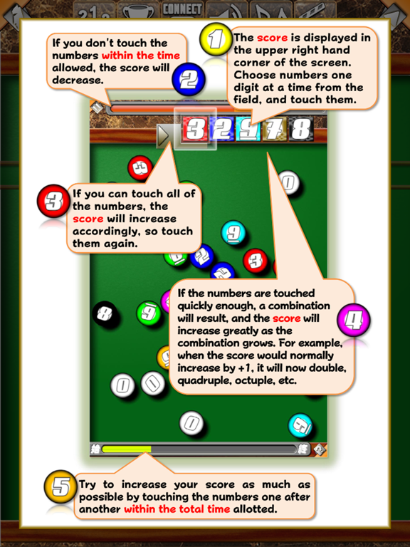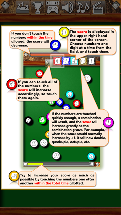 紧跟着提示出来的数字,按顺序接连点选,是脑力训练型的游戏。 "数解达人"游戏,是按照1.2.3.4...etc.的顺序,将提示出来的数字接连点选就可以了的简单脑力训练型游戏。 但是因为数字会有独特的动作,所以必须要能好好地抓到这些数字。 会在限制时间的1分钟内来比较您可以抓到几个数字。 另外,迅速就能回答出来的话,就可达成连续Combo,并进而获得更高积分。 为了觉得10进位数太容易了的您,也准备了有16进位数模式。 - 功能 ・预防痴呆。 ・训练动态视力。 ・训练周围视觉。 - 用法・用量 ・有空暇时间时请玩个1分钟。[版本2.30] >改进:屏幕会自动调整,以使按钮不会被带缺口的设备或主页栏隐藏。