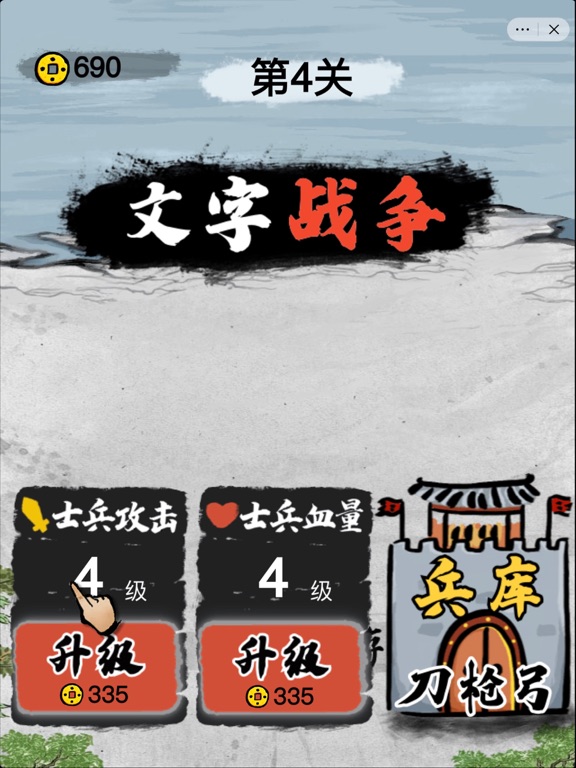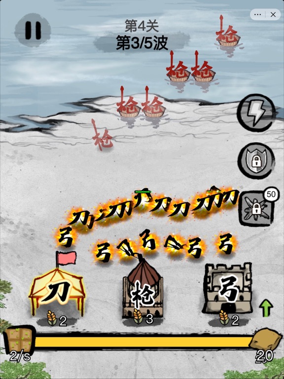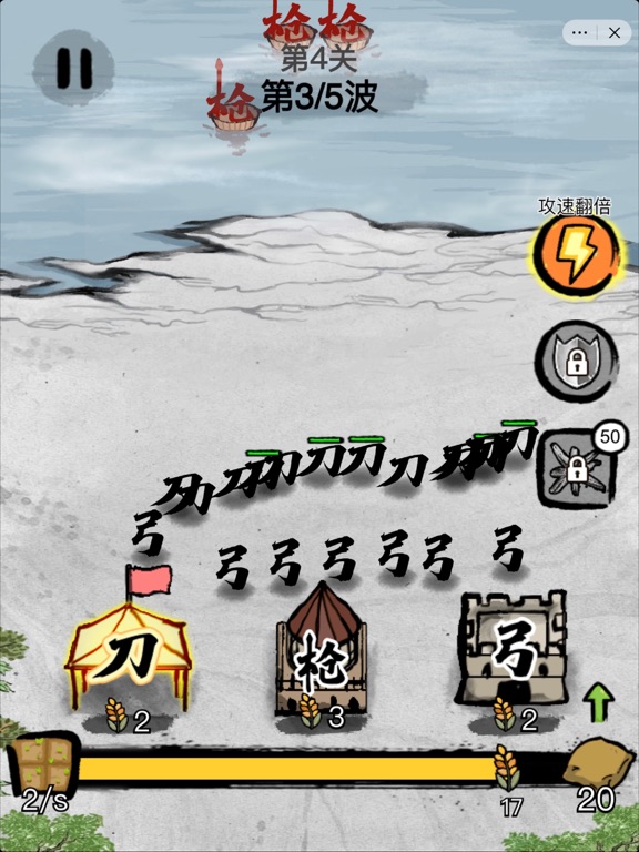 《文字战争》是一款水墨中国风的策略防守小游戏。每一个文字代表一个相应的士兵。玩家可以升级兵营、粮草供给,从而提高战斗力。当敌方来袭,玩家需要根据战场形势来部署防御部队。 玩家可以解锁多种兵种,每个兵种都有其独特的战斗方式。譬如“弓”字会弯弓搭箭。“枪”字会将自己的笔画捅出去。“刀“字会把自己抡起来攻击敌人。玩家可以自由组合兵种以及阵型,来对抗强大的敌军。游戏充满东方古文化韵味,清新简约,带给玩家非常独特而丰富的战斗体验。 增加ipad屏幕适配,修改bug