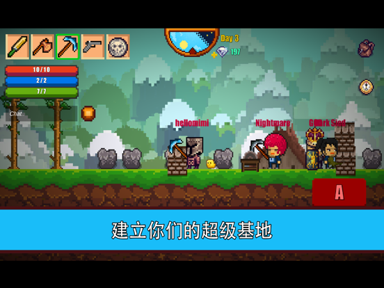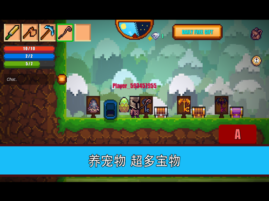 像素生存游戏2是生存游戏的续集。 你必须再次号令英雄一起生存! 不同的世界来探索,打怪兽,收集和建造! 有单玩单或多人与最多3个朋友一起玩! 许多秘密等待着你在像素生存游戏2。 特点 - 在线多人游戏最多4个玩家(有好友列表) - 寻找怪物蛋,它们孵化成很酷的宠物! - 超过一百样宝物 - 3种不同的模式 提示: 任务是让你了解游戏。请先完成菲菲任务和生存秘笈任务。 。 宝箱提示: 银色宝箱 - 物品,同等战利品几率 金色宝箱 - 装备和卡牌,同等战利品几率 大师宝箱 - 装备和卡牌,同等战利品几率 组合提示: 不同的物品结合可以创造一个全新的物品。如果配方有一个结合,你会看到该产品的物品。如果没有结合,它会说“未知”。每个配方都有一个成功率。为了提高成功率,你可以添加混合卷(+35%),或从秘笈混合(+ 50%)。万圣节活动将在中秋过后开启! - 服装?没错!用特殊服装道具装扮你的角色,打造全新造型! - 准备好你的南瓜灯,享受惊喜! - 服装仅供装饰,不提供额外奖励
