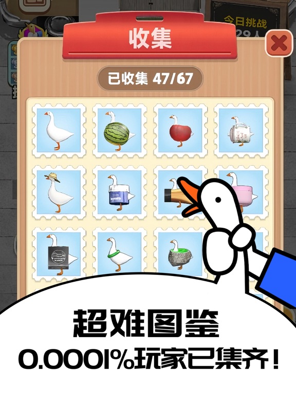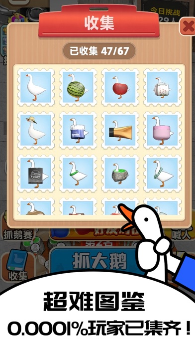 官方正版抓大鹅来啦! 巨好玩,巨上头的摸鱼神器! 不了解鹅鹅的宝宝请看这里! Q1:抓大鹅是什么? 抓大鹅是一款魔性的3D写实消除游戏! 在限定时间消除场景中的全部物品就能通关! 玩法简单易上手,男女老少消磨时间必备游戏。 Q2:抓大鹅怎么玩? 抓大鹅有8个不同的场景,每个场景中都有特色鹅。 鹅友每完成一个特定的关卡,就能收集到1只限定鹅。 进入游戏先通过第一关,第二关开始真正的挑战! 在规定的时间内,利用有限的道具完成关卡,成为抓鹅达人! 能抓到大鹅的人都强的可怕! Q3:抓大鹅有哪些玩法? 除了普通关卡外,抓大鹅每个月还有限时玩法哦! 每月的限定主题会推出多只限定鹅。 已出的限定主题有:新年聚宝盆、缤纷水果节、三缺一、抓娃娃机等。 除此之外,还有一些品牌限定活动、公益项目、联名活动! 当然啦,游戏本身还有好友同屏对战、分屏对战,以及鹅村排名战! 游戏玩法还在不断扩充中~~~ Q4:从哪里可以了解抓大鹅的最新动态? 除了游戏公告外,我们还开通了小红书、微博、抖音账号哦~ 都可以关注鹅鹅哒~ 小红书:抓大鹅 微博:抓大鹅小游戏 抖音:抓大鹅 微信:抓大鹅游戏圈 视频号:抓大鹅手机游戏抓大鹅新版本来啦! 1. 限时关卡“围炉煮茶”上线,在这个冬日,和大鹅一起烤栗子、烤核桃、烤地瓜吧! 围炉煮茶中混入了一只毛茸茸的——“好想桃”鹅,成功通关就有机会抽到实物毛绒玩偶哦~ 2.限时玩法“大鹅街机厅”上线,每天一个新主题“合成大鹅”,超好玩,超爱玩!喜欢合成的你一定不要错过! 3.其他产品优化和bug修复。