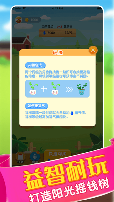 植物多种多样,竟有这么美丽的植物?快来试试你能合出多少   【合成摇钱树】尽享升级快感 【趣味任务】玩法多样 【种类丰富】多种植物花卉修复已知bug
