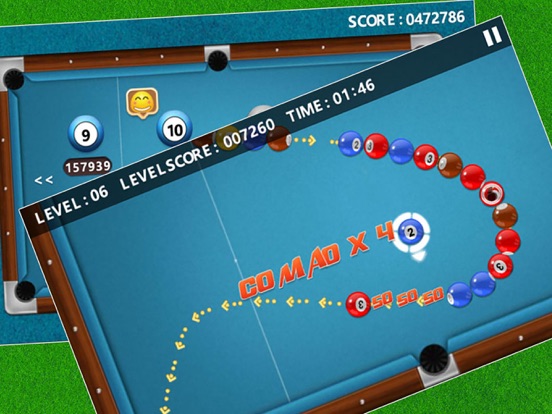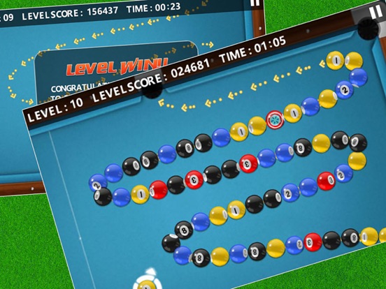 台球射击最有趣的益智游戏,台球主题的祖玛风格游戏,一个令人愉快的和独特的消除配对游戏, 简单但是非常让人上瘾! 游戏玩法简单明确,你的目标就是消除所有的台球并尽可能的创造更多的连击、连锁和穿越. 玩法介绍: 1. 点击屏幕移动手指切换射击角度。释放手指射击台球. 2. 射出台球形成三个或者更多同色的台球相连的状态即可消除 3. 玩家连续打出的所有球都发生了消除,成为“连击”,加分奖励。 4. 由一次消去行为引发的多次连锁式的消去为“连锁”,加分奖励。 5. 当“消除”动作产生时,消失的珠子会让珠串产生短暂的断层,如果玩家从断层中射出珠子又产生了“消去”动作,这个动作会称为“穿越” ,加分奖励。 6. 每一关都有相应的时间限制,在时间内完成关卡,将获得时间分数奖励。 7. 请保持网络畅通获取最新关卡!优化游戏部分功能,支持平台新政策!!
