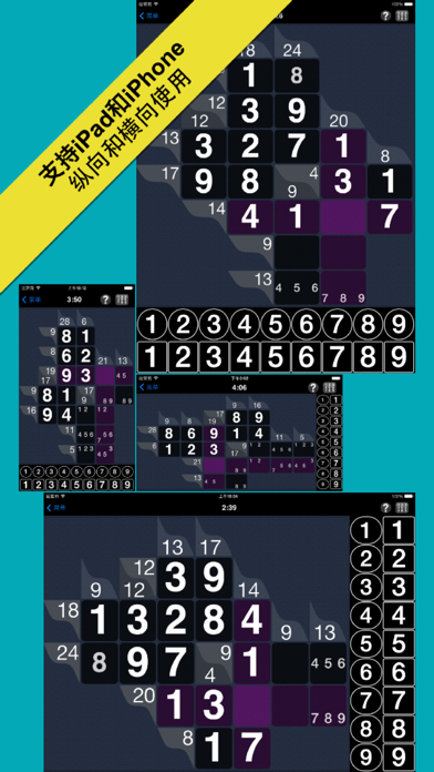 数谜是一款流行,具有挑战性且有趣的逻辑智力游戏,为人们提供了锻炼自己大脑的绝好机会。数谜的艺术的设计目的是为了使人们在移动设备上玩数迷游戏比在其他的设备上更高效,获得更愉快的娱乐体验。例如,在大多数的数谜应用中,添加注释以表明行或列中的可能数字是非常繁琐的。数谜的艺术通过允许多重选取,并允许将数字输入按键拖到另一边用于输入多个连续数字,使得游戏本身更快更容易。因此,带有总和为10的有三个空格的单行输入注释时只需按两下-并-滑动手势,而不是24次点击。 数谜的艺术在游戏设置和外观上还提供了无与伦比的选择。在各种各样的数迷应用中还有一些已使用的输入控制方案,但只有数谜的艺术可以让您选择,因为它有11个可用的输入控制命令。配色方案,背景图片和字体等选项让您能发现一种很有活力的风格 – 并通过定期更改密码来保持新鲜感。iPhone和iPad都完全支持纵向横向使用,再次让您按照自己的想法去使用设备。 现在下载,亲眼看看 为什么数谜的艺术是您iPhone,iPad或iPod touch的第一数谜体验。 产品特点: •无限的4x4智力游戏,外加1个一定大小和难度的游戏(60个游戏)。 ***购买完整版本的应用程序可以获得不同尺寸大小和难度的无限个智力游戏。 •可选的颜色,字体和背景图 •如果您遇到困难的话,“提示”可以引导您解决一个难题 - 不只是填写一个数字,还有实际的逻辑解释 •为选定行和选定列显示数字组合 •多种输入控制选项 •许多的游戏选项 •读数容易(如果您的视力没有您的头脑锐利的话!) •通用的应用程序,为iPhone和iPad设计的最优化应用 •支持纵向和横向使用 •自定义为英语,日语,汉语和西班牙语 更大的谜题(最多 14 x 14); 改进了对新款 iPhone 和 iPad 的支持; 支持基于 Apple Silicon 的 Mac; bug修复;