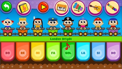 这是一款内容丰富的音乐游戏,游戏包含三个模式:乐器,歌曲和声音 1.乐器:该模式下面有4种乐器供玩家选择,可以学习使用这四种乐曲 2.歌曲:精心准备了20几首经典歌曲,可以自由弹奏,也可以自动弹奏学习 3.声音:包含了各种声音,包括动物、汽车、字符读音等 游戏画面精致,设置合理,非常适合学龄前儿童学习。家长们不容错过哟。修复小bug